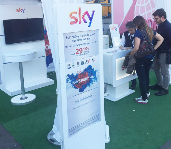 Fabricamos os kits de stands itinerantes da Sky para o mercado italiano. O kit vem numa mala com rodas e é totalmente fácil de transportar, sendo composto por vários elementos, conforme solicitado pelo cliente. Graças ao nosso know-how, somos capazes de desenvolver produtos à medida das necessidades do cliente, personalizando tanto o design dos objetos como os componentes do kit.