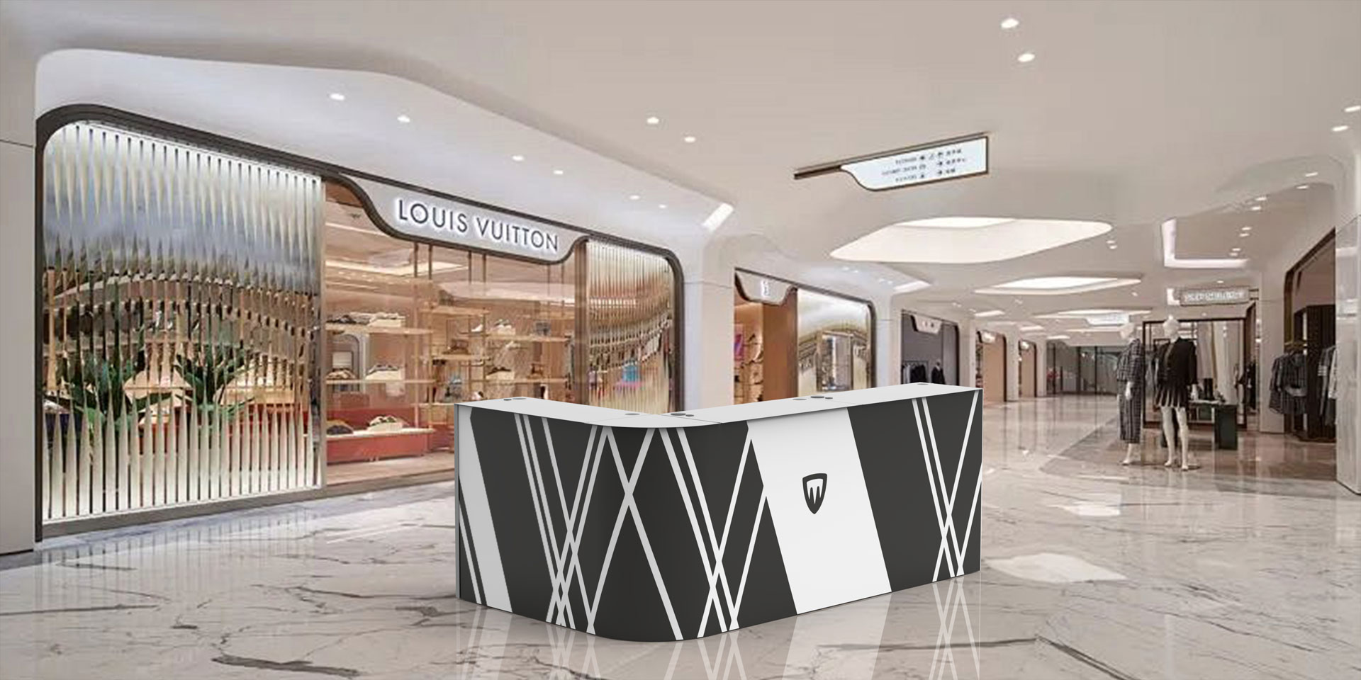 Para cada balcão deves adicionar um kit final, como remate estético para o balcão de receção. Poderás, assim, combinar Sfera e Scudo como preferires, mas sempre com um kit final.