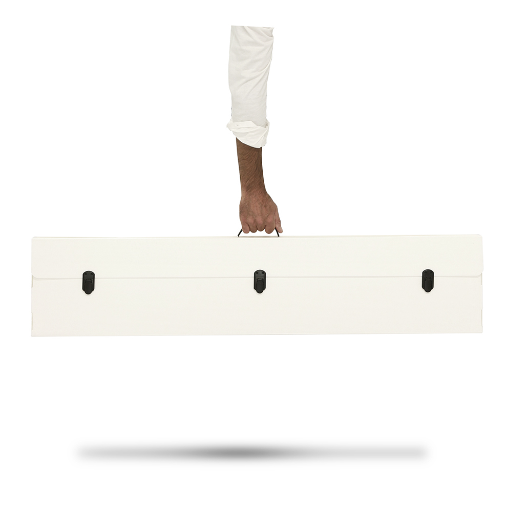 A linha estética de forma moderníssima é o contentor de design de toda a tecnologia patenteada para o nosso roll-up standard: portanto, mola e sistema de travão.